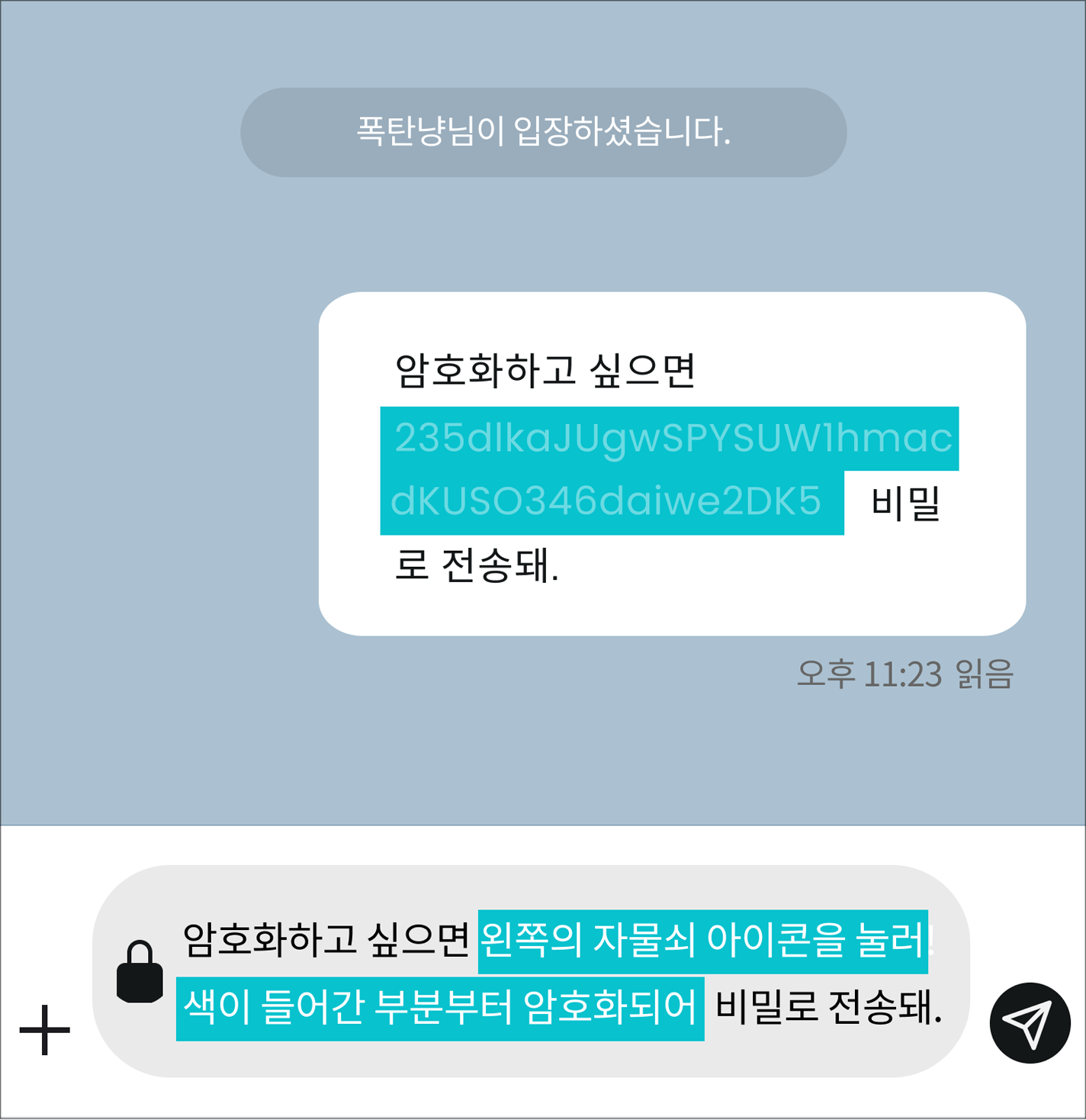 메시지는 모두 양자내성암호(PQC)로 종단간 암호화되어 있어, 양자컴퓨터를 사용해도 해킹할 수 없습니다.