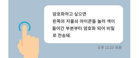비밀 메시지와 같은 줄의 아무 곳이나 손으로 꾹 눌러보세요. 메시지 창 밖이어도 같은 줄이면 괜찮아요.